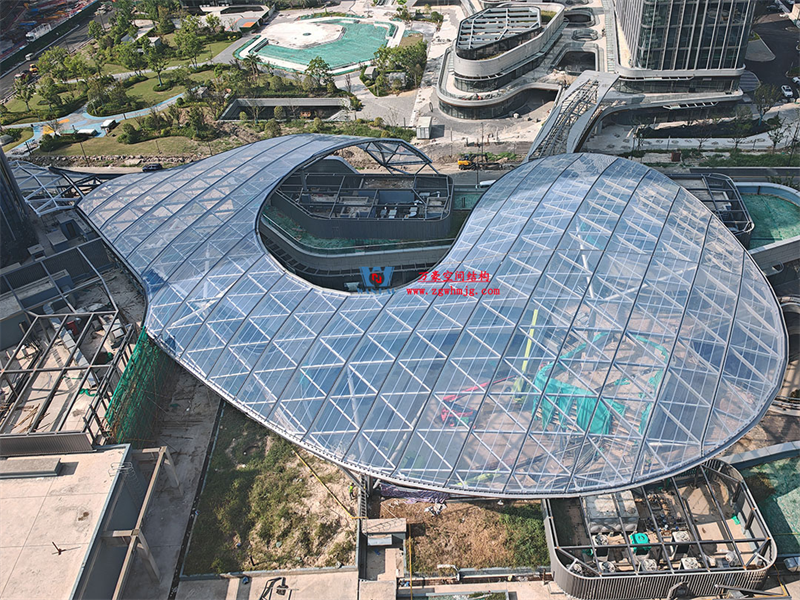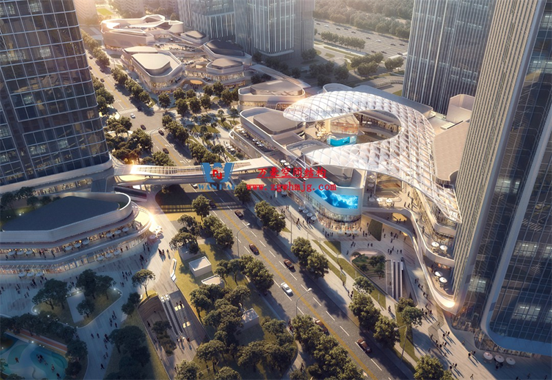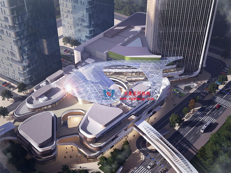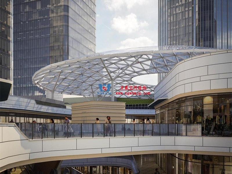 绍兴华发金融活力城ETFE膜结构商业天幕工程位于浙江省绍兴市,该项目ETFE膜结构展开面积约4100平方米。