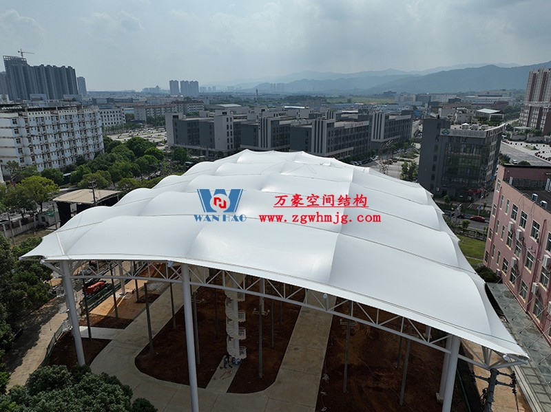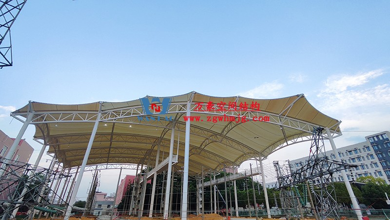 国网江西省电力有限公司培训中心实训基地改造膜结构项目位于江西省南昌市经济技术开发去海棠南路268号,该项目用钢量约525吨,PTFE膜结构展开面积约5200平米。