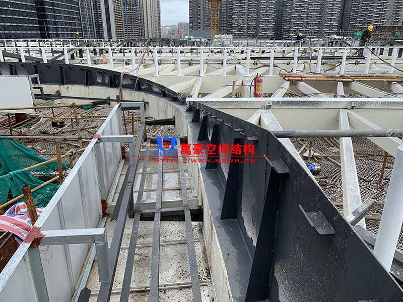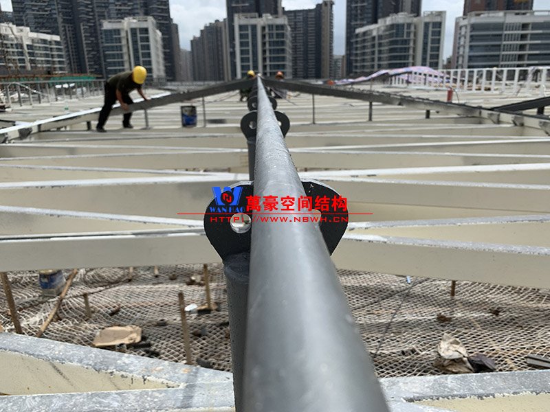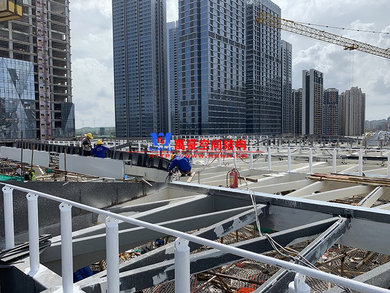 红山六九七九商业中心项目幕墙工程Ⅱ标段膜结构钢结构工程位于广东省深圳市龙华区,此工程用钢量300吨,膜结构展开面积5000平米,由宁波万豪空间结构工程有限公司承建。 该工程一共分为四个单体,分别为YP1、YP2、YP3、YP4。目前YP3二次构件安装完成90%,YP4二次构件准备开始动工。 期待整个工程的完工,来领略它独特的风采。