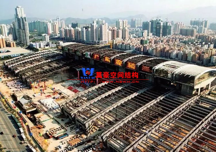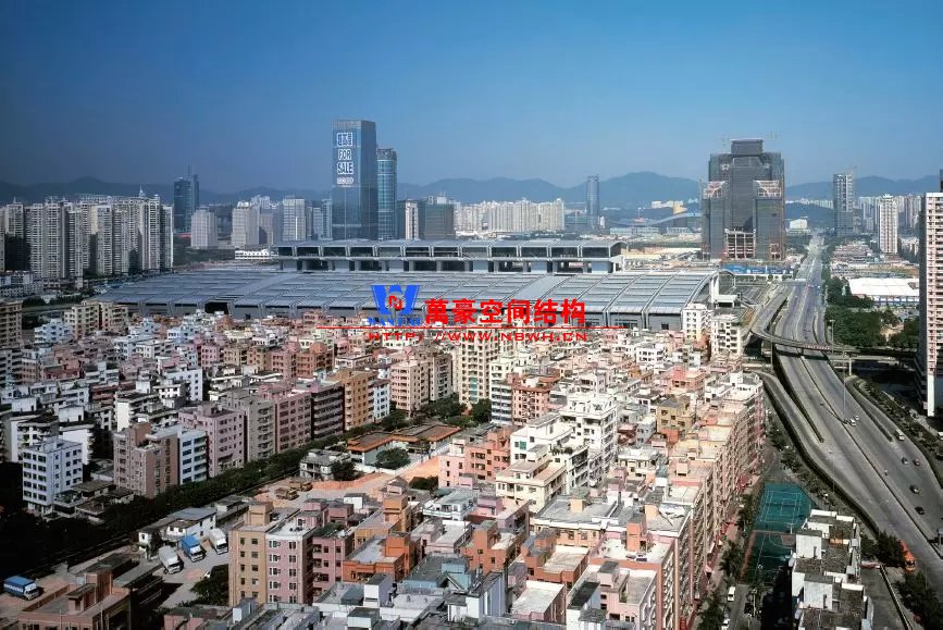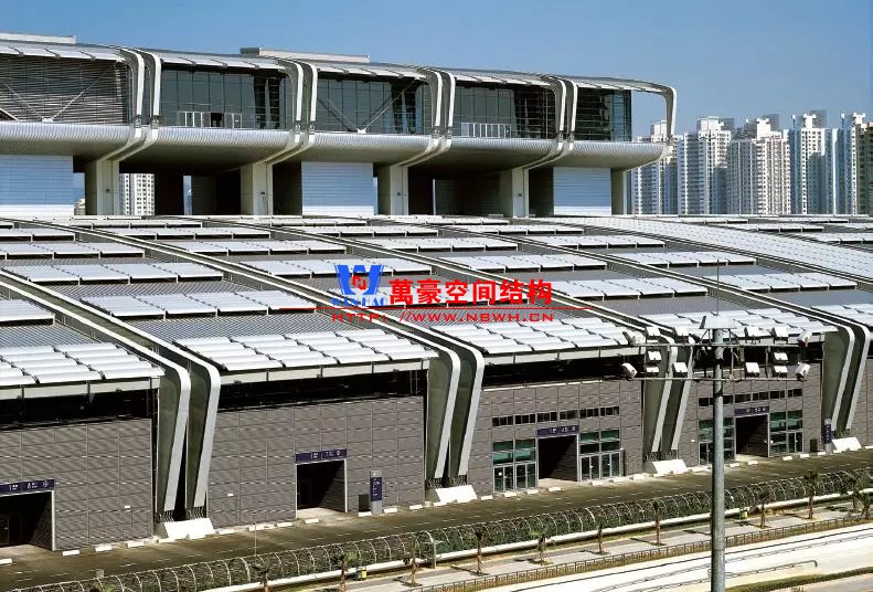 展览厅屋盖结构由35榀巨型双箱梁组成,每榀梁结构跨度126m,一端与地面铰接,另一端与标高约30m处的混凝土柱牛腿铰接。gmp和sbp共同的设计目标是塑造一座简朴自然而清晰的建筑,尽可能地耐久且减少后续维护。与汉诺威4号展厅的结构理念类似,采用双梁构件来划分大尺度空间,从而形成有秩序的结构体系,采用箱型截面构件则是为了用纯粹的语言去表现建筑的张力,突出线条感。从设计之初就秉承一个理念:整个建筑语言是无法通过“轻巧”的桁架结构加上外表皮来表达的,只有通过富于设计感的外露结构构件本身来表达。超过15年时间的深圳会展中心至今依然优雅经典,这一设计理念也得以印证。