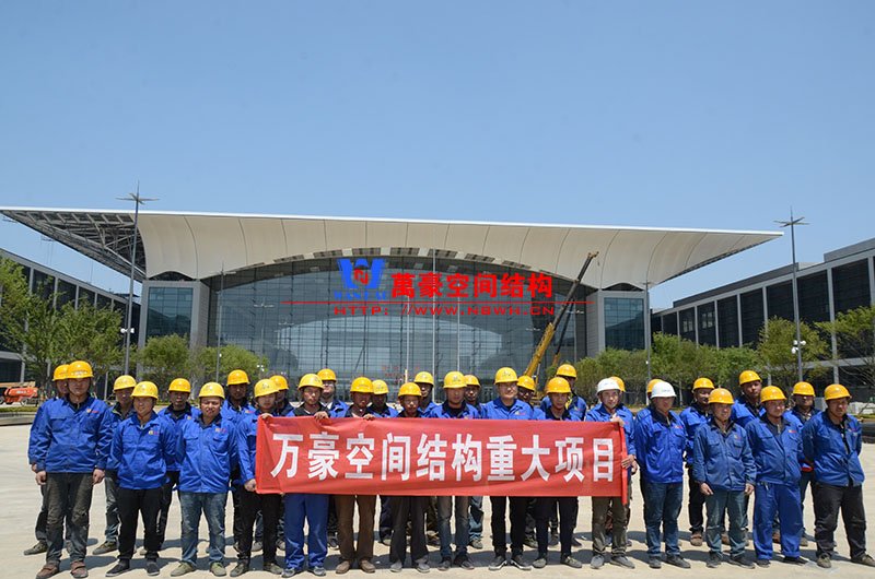 除了立柱和水平连接杆之外,所有的结构杆件均为柔性索或钢板带,虽然这样的新型体系大大减少了结构用钢量,但同时也给设计和施工带来了巨大挑战。通过精细和严谨的受力找型、结构有限元多方位分析、严格而准确的位型及精度控制和安装分析,最终成就了这座大跨柔性体系展厅。