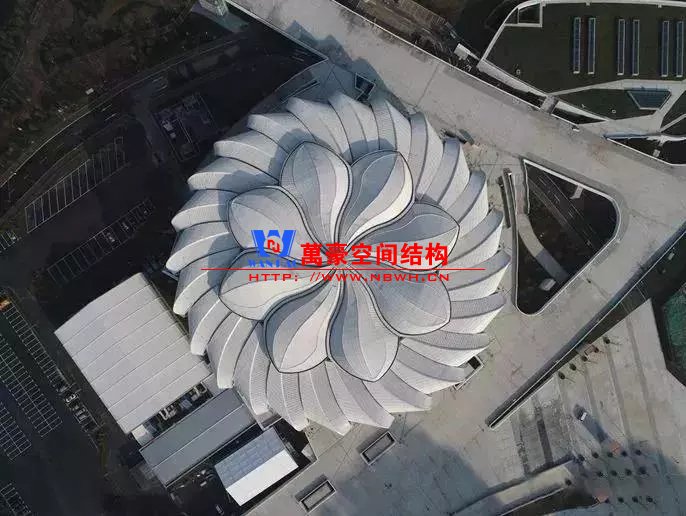 屋盖能根据天气情况,旋转开合。当“花瓣”旋开时,不管是从天上看,还是在底下看,都能感受到场馆的盛开状况。
