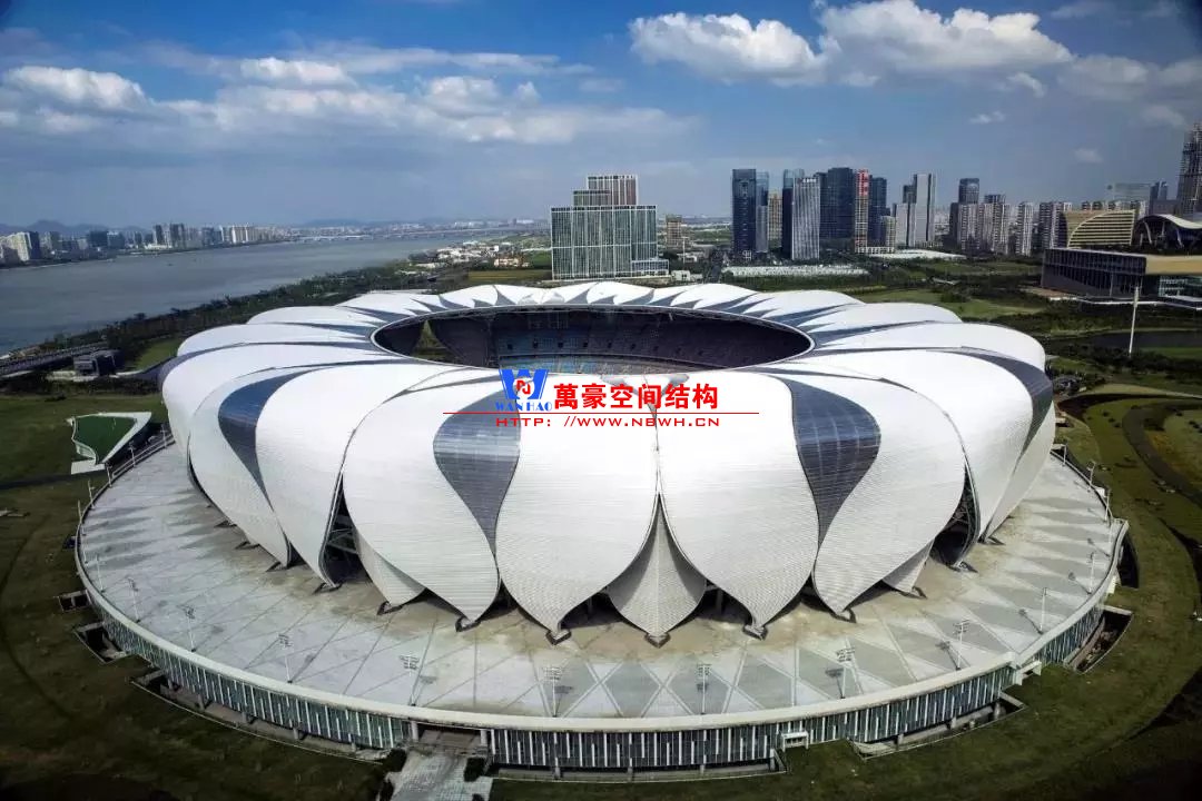 这座巨型“莲花”建筑,是杭州奥体博览城的主体育场,与网球中心的形象相似,但主体育场一般被称为“莲花碗”,与“小莲花”网球中心区别开来。