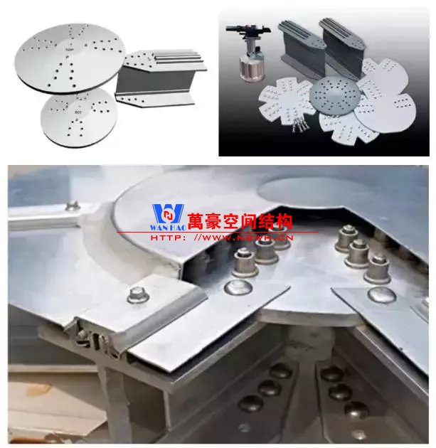 但是由于焊接会造成铝合金强度大幅下降,铝合金通常采用圆盘连接节点。而圆盘节点抗剪性能差,不适合用在以受弯为主的梁式结构。壳体结构内以压应力为主,构件设计均为稳定控制,对节点需求低。因此,铝合金结构特别适合用于受压为主的球壳结构。