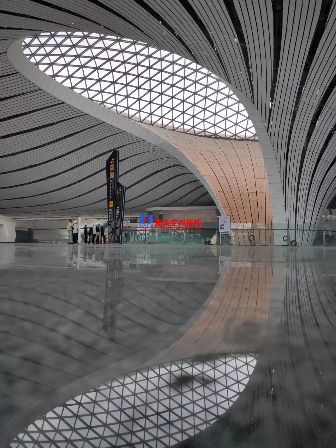 铝合金结构网壳经典案例也有很多,其中近两年被大家熟知的有牛首山大小穹顶和北京新机场天窗。铝构件的尺度都很小,从通透性上来说,效果比普通钢网壳要好。对于本项目要填满的圆圈,也不失为一种选择。