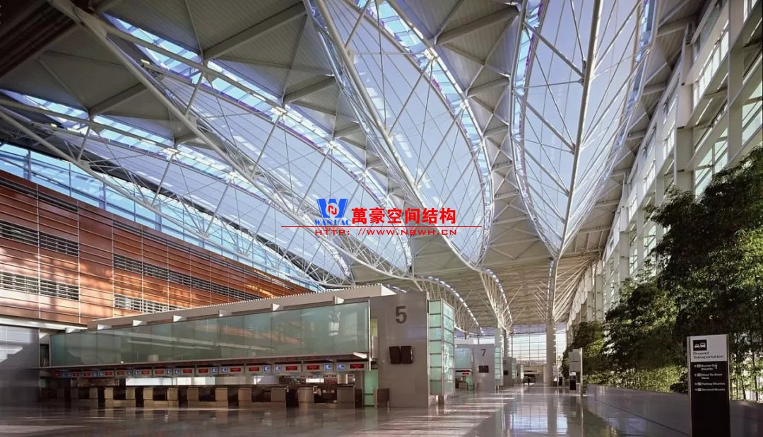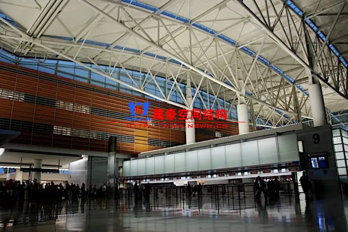 关西机场建筑设计概念上追求连续的空间感受。建筑建筑上呈现流动的形态。结构上采用了82.8米超大跨度的空间桁架。