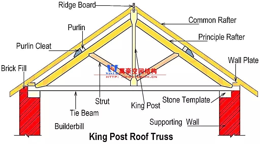 早期的三角桁架只有2根斜置上弦杆和1根水平下弦杆。而后,人们根据经验,尝试在三角形内部对应弦杆中间点的位置,增加了3根腹杆,演化出单柱式屋架(KingPost Truss)和双柱式屋架(QueenPost Truss) 两种基本形式。