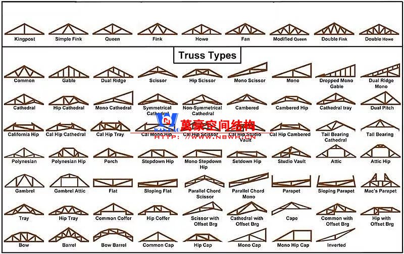 单柱式和双柱式屋架在相当漫长的历史中并没有太大变化。直到19世纪中叶,各种现代桁架形式相继出现,比如豪威桁架(Howe)、芬克桁架(Fink)、华伦桁架(Warren)、普拉特桁架(Pratt)等。桁架材料也不再局限于木材,越来越多的采用了铁或钢。