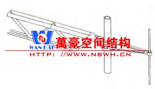 对于桁架的高度与跨度之比,通常空间桁架为1/12~1/16,立体拱架为1/20~1/30,张拉立体拱架为1/30~1/50。在选择桁架形式时应综合考虑桁架的用途、材料、支承方式和施工条件。