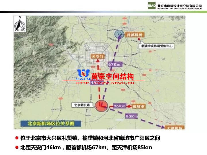 北京大兴国际机场(Beijing Daxing International Airport,IATA:PKX,ICAO:ZBAD),位于中国北京市大兴区及河北省廊坊市广阳区之间,距首都机场67千米;定位为大型国际航空枢纽、国家发展一个新的动力源、支撑雄安新区建设的京津冀区域综合交通枢纽。