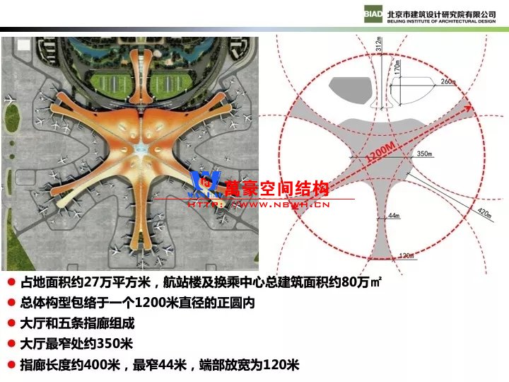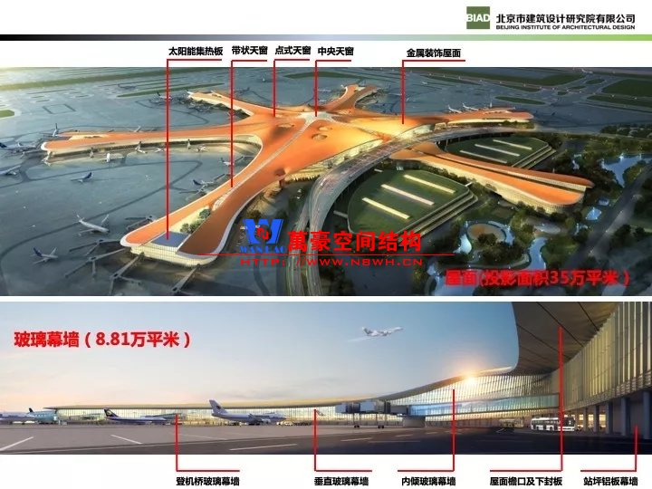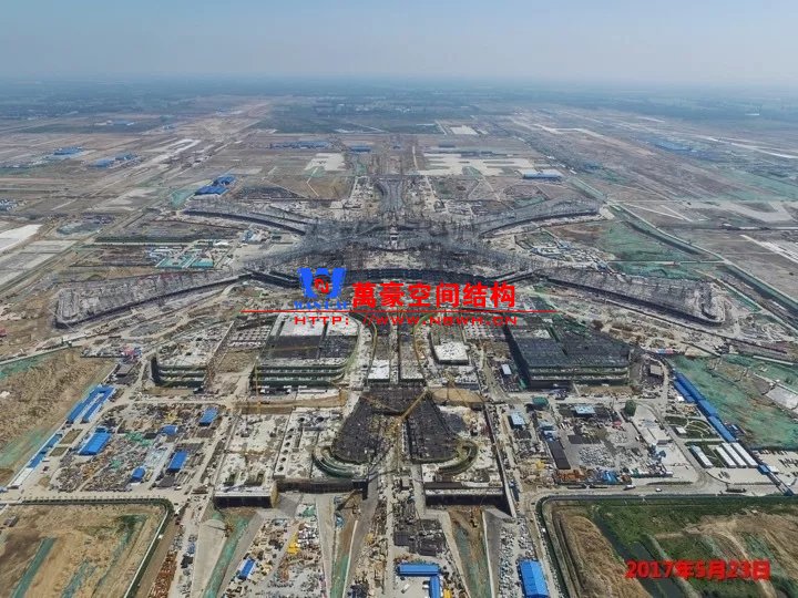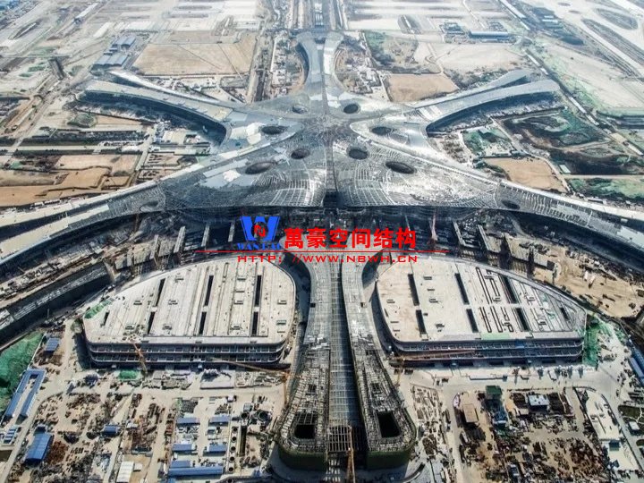 北京大兴国际机场于2014年12月开始动工,于2015年9月全面开工,时名“北京新机场”。2018年9月,机场定名为“北京大兴国际机场”。2019年9月25日,机场正式投运。北京大兴国际机场航站楼综合体建筑140万平方米,可停靠飞机的指廊展开长度超过4000米。机场规划四纵两横6条民用跑道,本期建设三纵一横四条跑道、268个停机位。机场建成了“五纵两横”的交通网络,1小时通达京津冀。