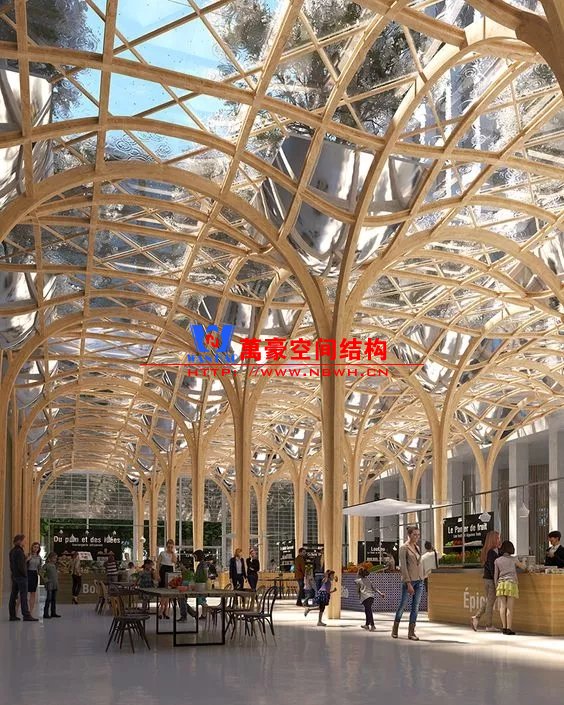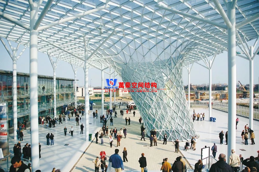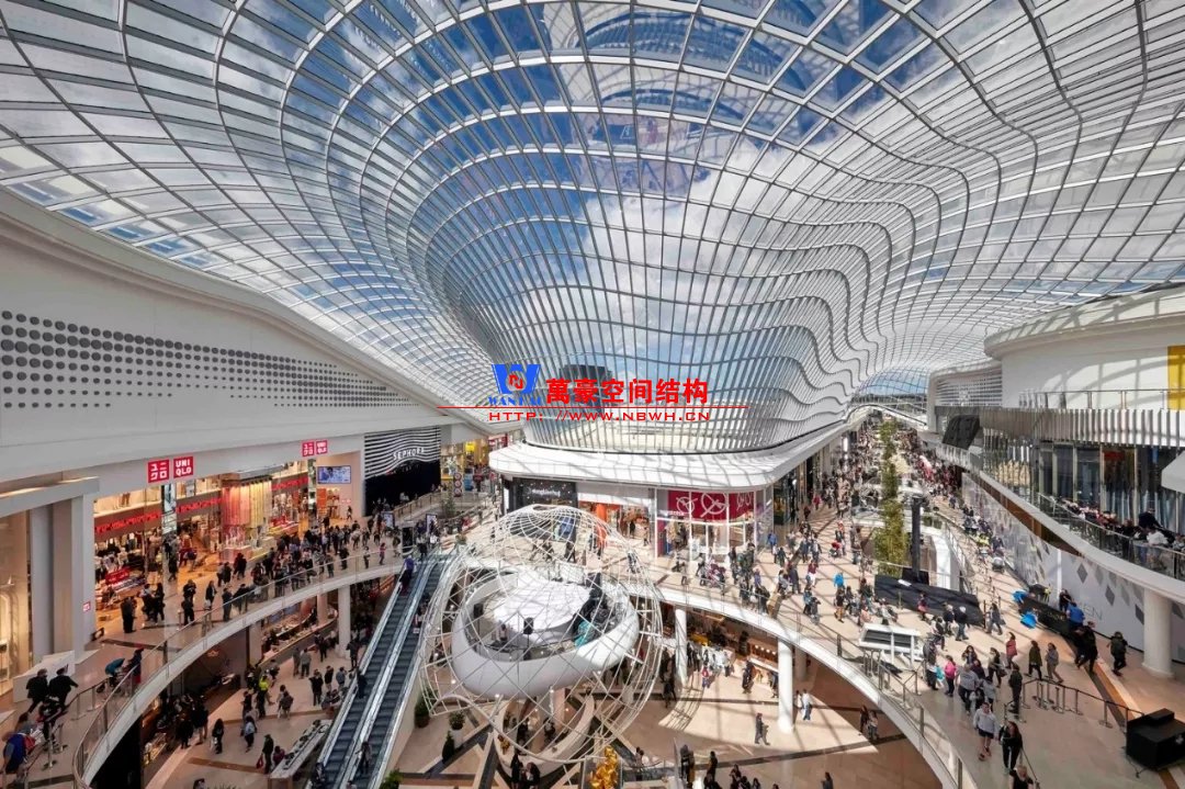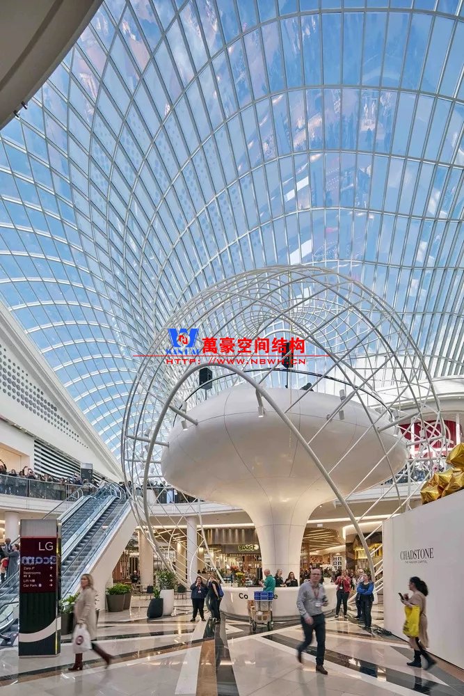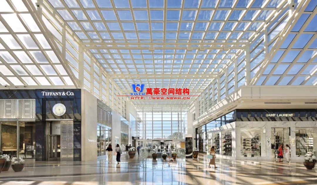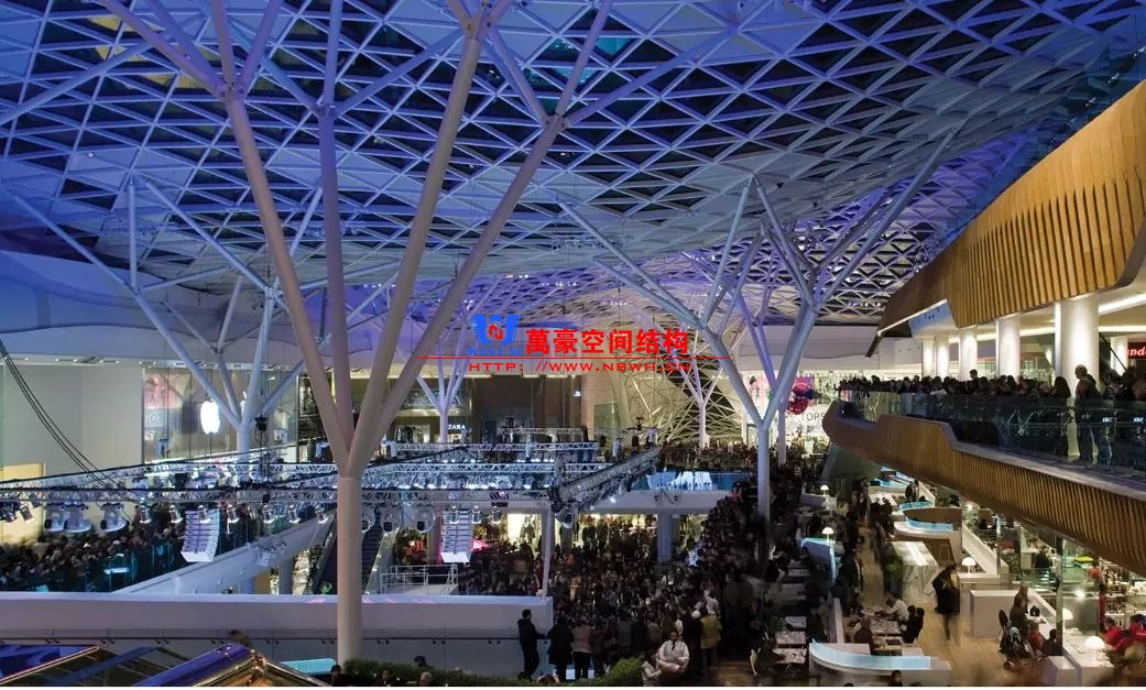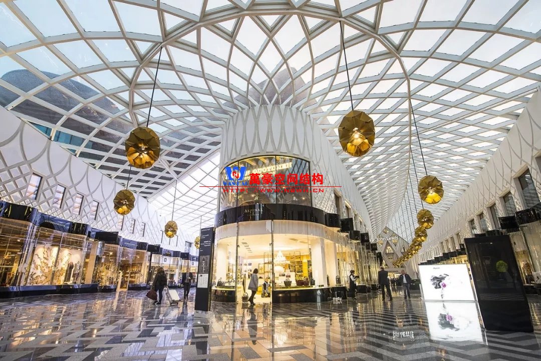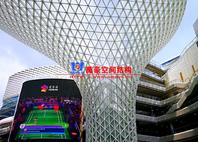 对于跨度比较小的天幕,采用单向梁或交叉梁即可实现。这一类天幕的结构创新主要体现的网格布置、截面形式和节点细节方面。例如,网格布置可以是三角形、四边形、联方形、六边形等等。