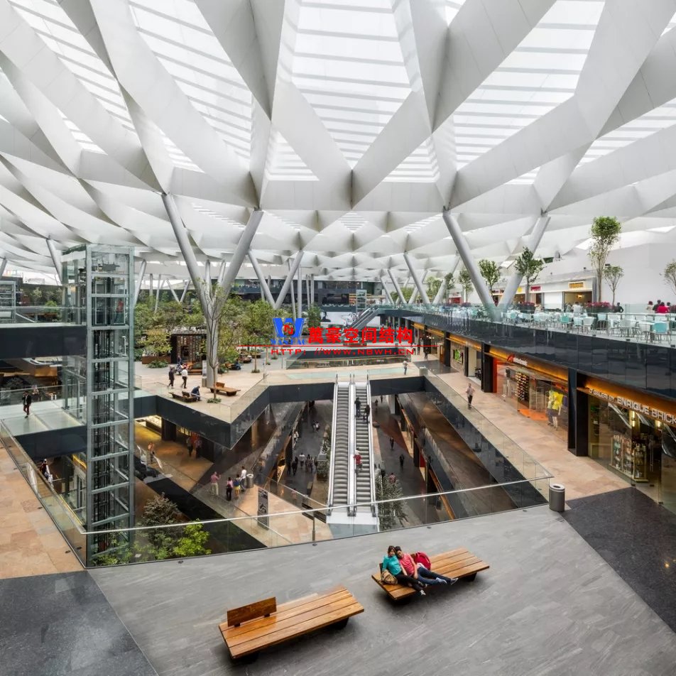 伞状穹顶结构充分发挥了网壳的形抗优势,最小杆件截面仅100x100mm,营造出建筑师非常期待的精致轻盈效果。
