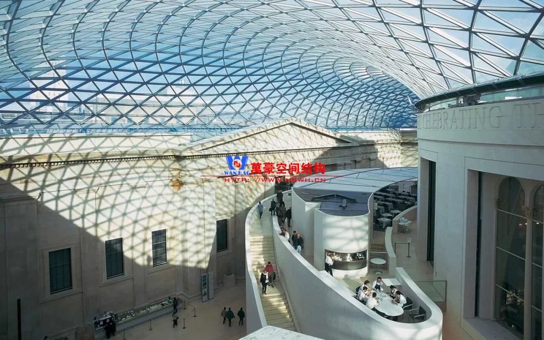 英国博物馆为了解决内部缺乏空间、缺乏通道、中心图书馆利用率低的问题,启动了大庭院加建天幕的改造项目,由福斯特事务所负责设计,其设计构想是新与旧共生。