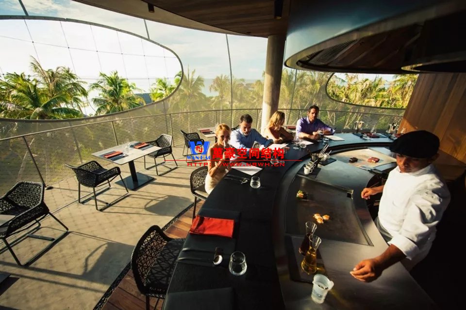 法拉利织物幕墙完美的微气候调节系统适合窖藏世界上最优质的红酒,此外还有口味绝佳的日本料理在此恭候游客的品尝。酒窖占据了两个较低的楼层。其余楼层用于餐厅设施和餐厅本身。最后一层设有一个休息室,可欣赏整个岛屿的景色-这是马尔代夫所有地区唯一的全景视图。