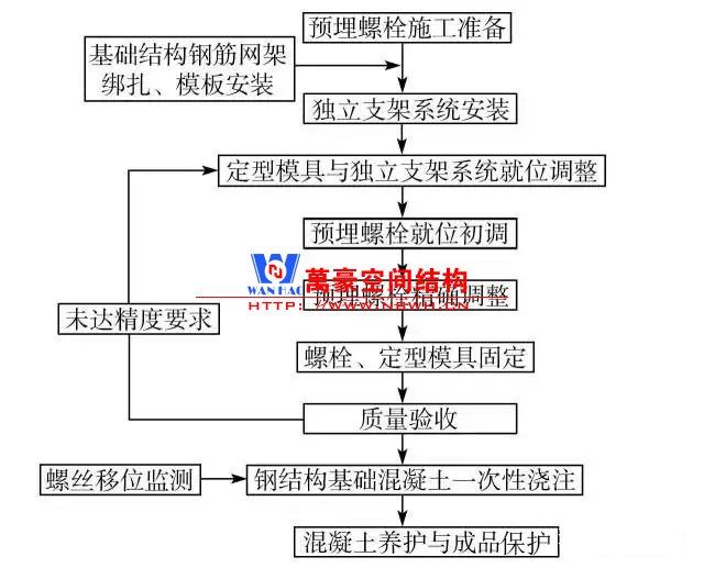 钢结构预埋螺栓的工艺流程图如图 1 所示。