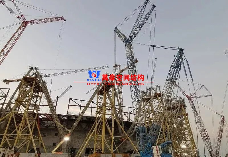 当地时间2019年5月10日,中国铁建承建的2022年卡塔尔世界杯主体育场卢赛尔膜结构体育场项目第一榀单V柱吊装成功,标志着在控制工期关键因素的钢结构施工中实现了重大突破。