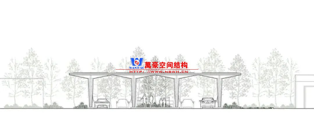 充电站由一系列 “树” 结构组成。其特征是树冠状的顶,过滤阳光并提供遮阳和保护的同时,界定出绿色的环境和平静的氛围。这与传统的加油站形成了强烈的对比,传统的加油站里车辆排着长队,到处都是汽油味和汽车尾气的味道。