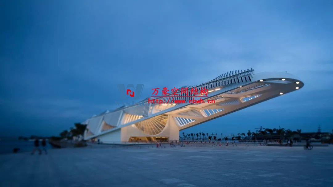 带有大型活动翼的悬挑屋顶和立面结构几乎扩展了整个码头的长度,强调延伸到瓜纳巴拉湾,同时最小化了建筑的宽度。建筑外围有一个倒影池,用来过滤从海湾抽上来的水,然后从码头的一端放回去,给游客一种博物馆漂浮在水面上的印象。