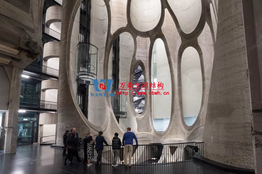 材料和轻质特氟隆聚合物制成。这种材料具有绝缘玻璃的隔热性能,并且仅相当于绝缘玻璃的一小部分重量。“The Shed” 的聚氟乙烯面板是有史以来最大的面板,在一些地方其长度接近21米。