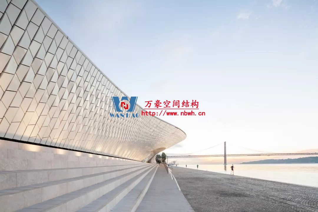 临水的位置,视野还开阔,建筑采取了一种夸张却又非常柔和的姿态,它低矮,如同是河流卷起的一个涟漪。轻柔的起伏,让建筑的屋顶变成了博物馆的一个室外空间,也成了一个城市的舞台。在这里,游客可以欣赏城市的远景,在晚上,观看一场以里斯本为背景的电影。