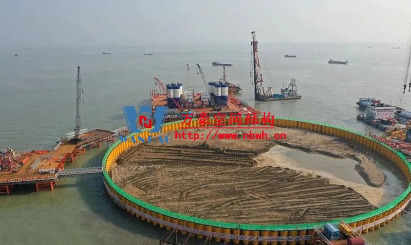 S04标围堰用拉索采用5*187平行钢丝拉索。通过拉索与配套装置的连接形成一个圆环,将围堰牢牢固定住防止开裂;拉索应用在围堰结构中也是首次应用。它所起的作用是截止水源及挡土的作用与效果非常理想,其使用的材料有:泥结土石围堰、编织袋砂包围堰、松木桩围堰、水泥旋喷桩围堰、钢板桩围堰等的一切施工手段及措施,围堰一般在用完后拆除。