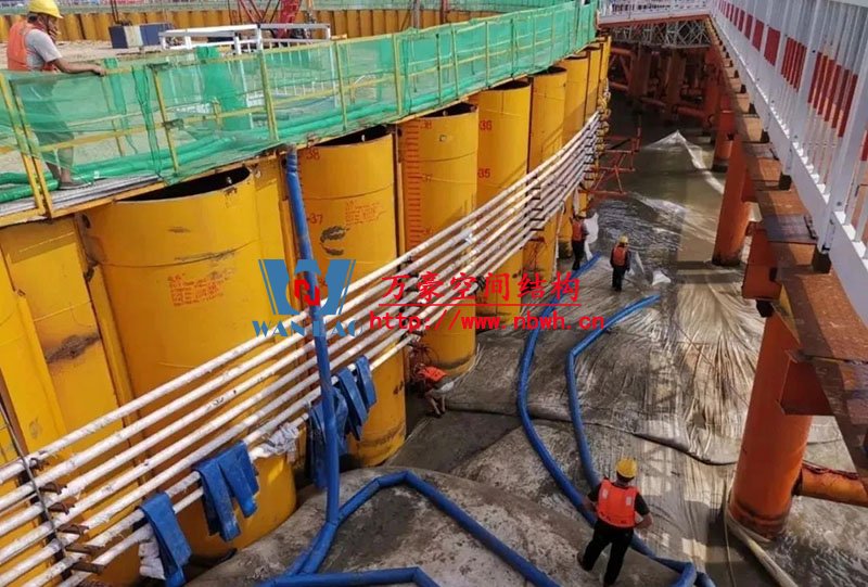 近日,随着深中通道伶仃洋大桥西锚碇地连墙最后一个槽段顺利完成混凝土浇筑施工,西锚碇地连墙围护结构宣告完工。伶仃洋大桥西锚碇作为目前世界上最大的海中锚碇,锚碇面积相当于17个篮球场大小。