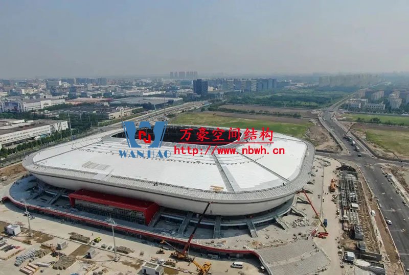 浦东足球场施工已近尾声,这只巨大的【白瓷碗】将迎接10月底在此举行的2020英雄联盟全球总决赛(S10)冠亚军决赛。这也标志着上海市将再添一座世界级专业足球场。 作为一座“超级足球场”,浦东足球场除举办传统大型足球赛事外,还有着更多的“内涵”——球场内部配备专业电竞空间及相关配套设施,使之成为上海又一标志性电竞赛事场馆。浦东足球场的对外首秀就是一场世界级的电竞盛宴——将于10月31日举办2020英雄联盟全球总决赛(S10)冠亚军决赛。届时,这只精致的“白瓷碗”将惊艳亮相。 浦东足球场项目由久事集团承建,建设地点位于张家浜楔形绿地,球场总建筑面积为139304 ㎡,固定坐席数为33765个,设置一座地上3层比赛球场和2片训练球场。 足球场整体沿南北向布置(北偏西15°),主球场西侧设置两片室外训练场,形成中轴方正、平整对称的格局;北侧靠近锦绣东路设置绿化入口广场,作为赛时大量人流到达的缓冲空间;同时,沿足球场外圈设车行环路,合理地进行交通流线设计和出入口布置,做到人车分流。为了满足亚足联和国际足联对专业足球场的技术标准和要求,场馆依靠下沉比赛场地,抬高地下空间来提升疏散效率。 球场的屋盖采用了预应力轮辐状张拉体系,就像一个自行车的轮毂横着盖在了球场上方,最大特点是用钢结构和索网结合,取代了以往比较沉重、繁琐的钢桁架体系,最大的好处就是轻量化,整个屋盖的用钢量在4600吨左右,相比以往传统的建造方式,在用钢量上大约减少了50%。 屋盖最内圈由透明的阳光板组成,让阳光能透过,照射到草皮上。再往外的一圈屋盖,则由白色的铝复合板、膜结构等组成。整个屋盖呈一定的坡度向空中伸展、合拢。而屋盖周边还有排水管道正在安装,保证在雨天时雨水的排放。在阳光板的下方,还有一圈马道,用于布置灯光、摄像机位等,高度也高于上层最后一排看台,使得观众的视线不会被阻挡。 此外,球场采用矩形导圆角双层看台布局,平台层面向球场完全开放。第一排观众座席距离球场仅10米,视线开阔不受遮挡,可大大提升观赛氛围和体验。未来浦东足球场将以足球平台推进地区整体建设,成为上海市群众健身、休闲、娱乐的载体,打造公共体育活动中心,满足市民多样化健身需求。 值得一提的是,浦东足球场的草坪系统将对标国际高标准的场地条件。建设过程中充分考虑上海潮湿闷热和多雨的气候特征和应对密集的赛程安排,所有场地都种植天然草,辅助草坪根部加固(锚固草)系统,并且比赛场地还加装根部通风排水系统,改善土壤微环境帮助草坪生长,将满足全天候高密度的比赛赛程和高水平的赛事工艺要求。 资料:久事集团 编辑:顾依依 本文转载自:上海发布