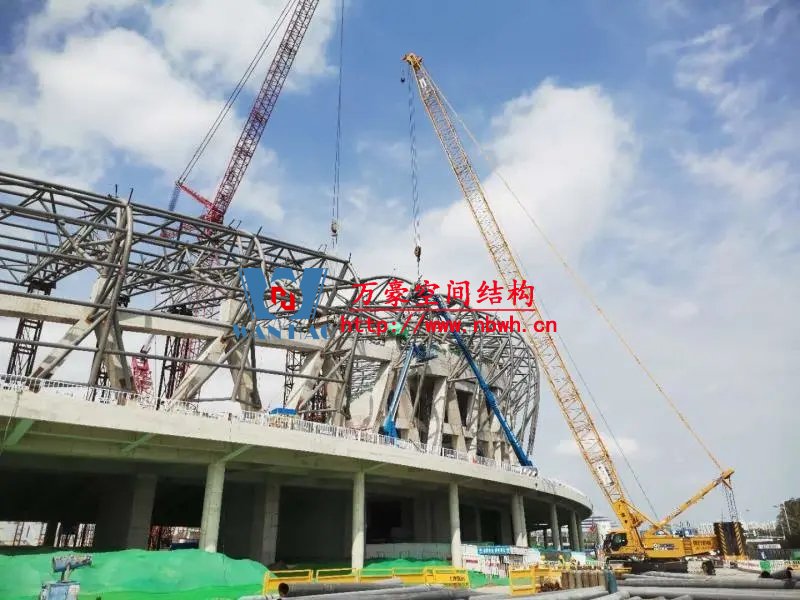 唐山新体育中心项目屋顶主桁架全部吊装完成