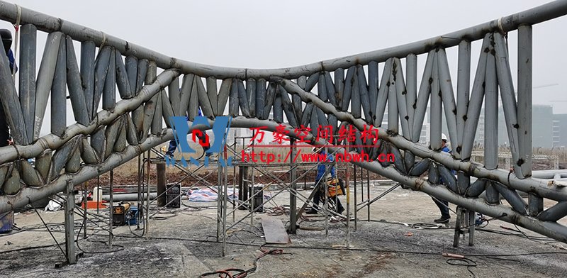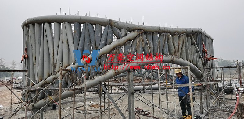 四川南充电影学院景观膜结构工程主桁架基本拼装完成