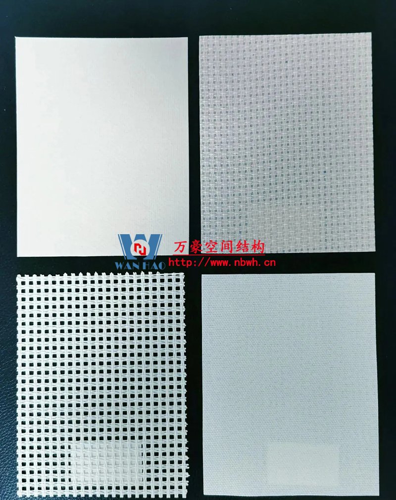是最常用的膜材,由高强度纤维织物涂覆耐久性保护涂层构成。特点是强度高、自洁性好、挡风遮雨(不透气、不透水);有一定透光率(8~15%,透光不透景),不吸音。