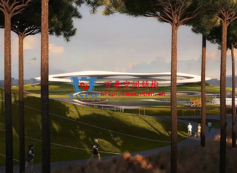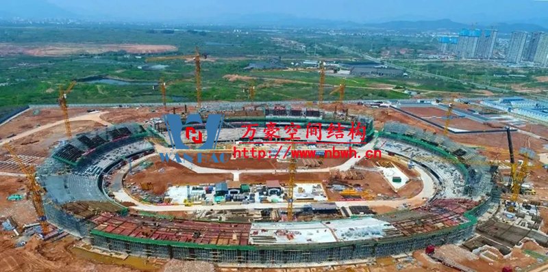 经过紧锣密鼓的施工,其钢结构屋盖罩棚完成合拢,接下来将正式进入膜结构施工阶段。