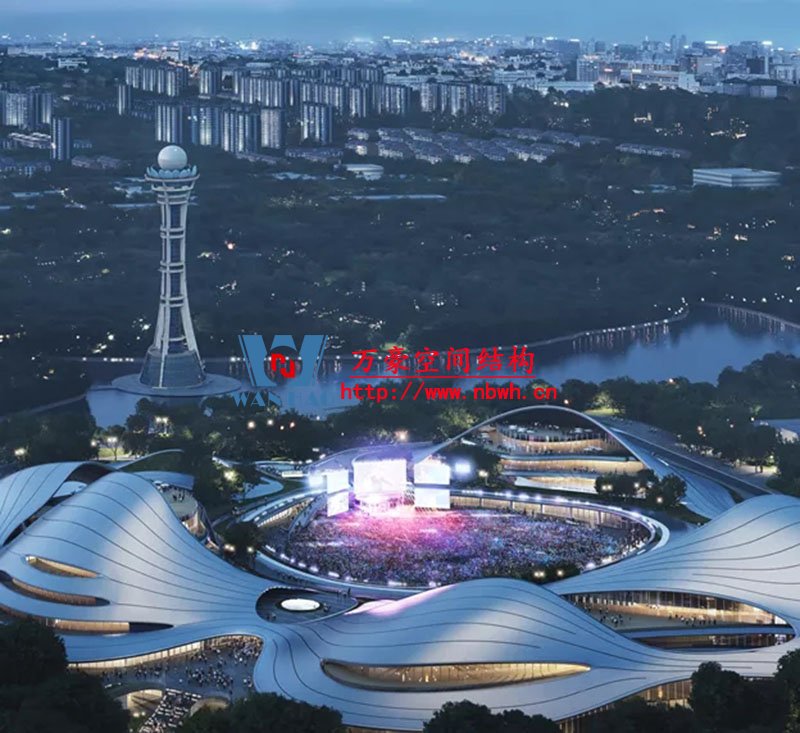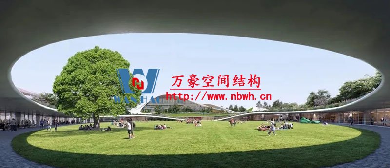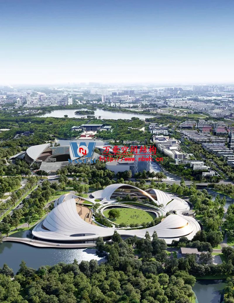 MAD设计了一座公园中的景观建筑。以中央圆形草坪为中心,人和建筑在此互动、共享,这里成为更开放、更亲和、更具活力的新型城市空间。三处场馆“手拉手”地连接一起,通过环形屋顶围合成一个整体。线条有机流动,呼应了江南水乡的柔美与飘逸,尽显灵动。