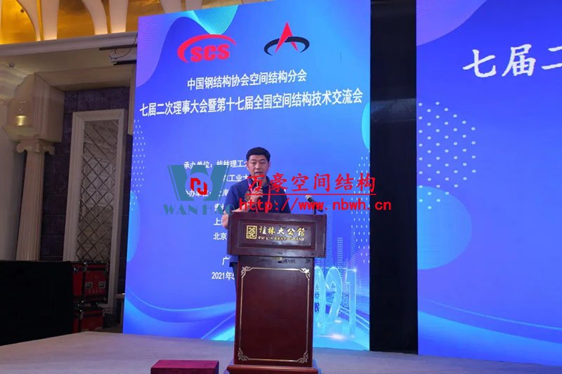 空间结构分会名誉理事长蓝天,空间结构分会高级顾问、中国工程院院士沈世钊,中国钢结构协会副秘书长戴长河、空间结构分会前理事长张毅刚,副理事长张其林、李亚明、胡鸿志、黄达达、李中立,高级顾问许立准等出席开幕式。