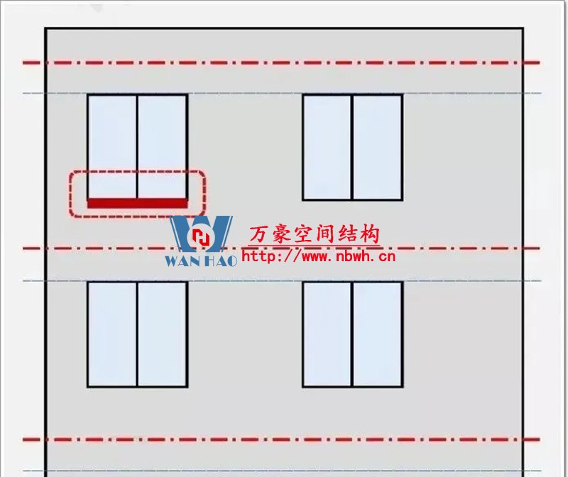 窗户则是通过四周的框架与洞口连接,以线传递的方式将自重和所受荷载传给主体结构。