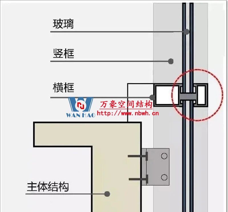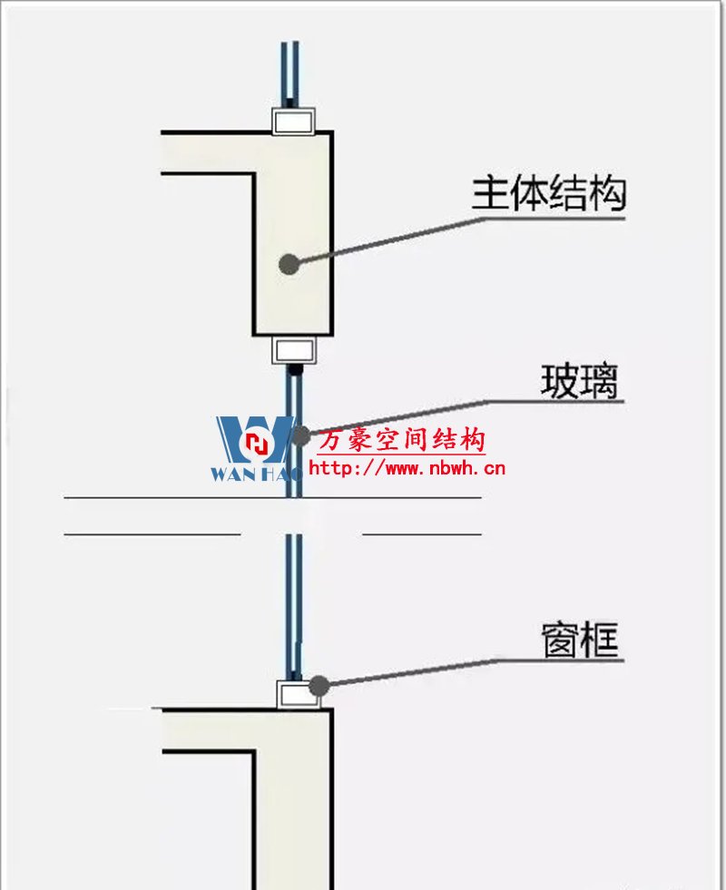 幕墙是通过锚固支座,以点传递的方式将自重和所受荷载传给主体结构。