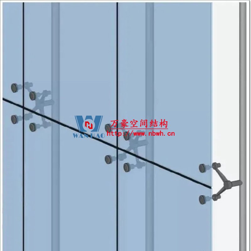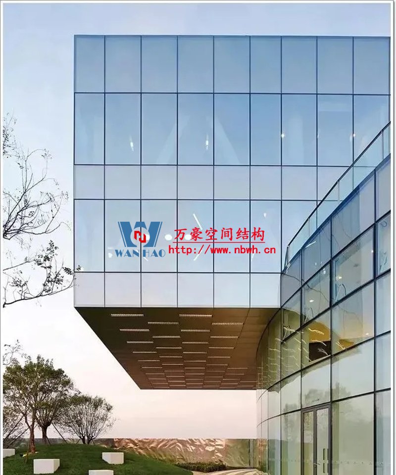 点式幕墙比较好理解,玻璃与主体结构是通过爪件点式连接,主体结构有钢立柱、拉索、桁架等。点式幕墙的价格在这几种形式里算最贵的,大概在1600元/㎡。