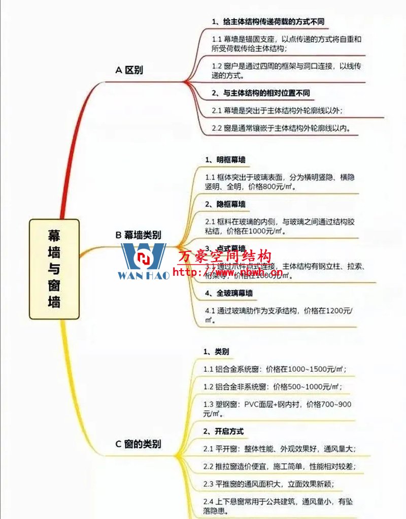 (1)与主体结构传递荷载的方式不同:幕墙通过锚固支座以点传递的方式,将自重和所受荷载与作用传给主体结构;窗是通过四周的框架与洞口连接以线传递的方式将自重和所受荷载与作用传给主体结构;