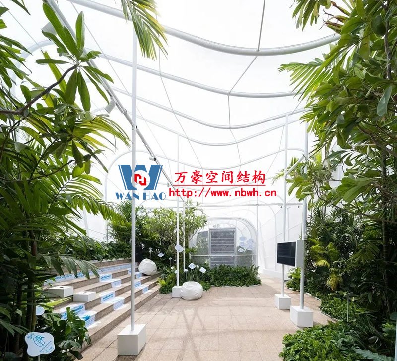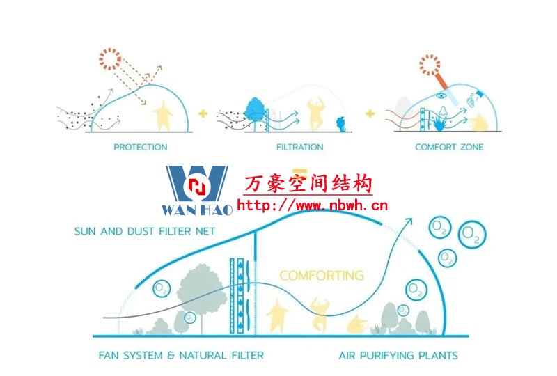 受“云”的概念启发,展馆被设计成具有未来感的有机形式。它营造了清新的空间氛围,同时通过植被覆盖和工程技术的结合,形成了令人愉快的小气候。