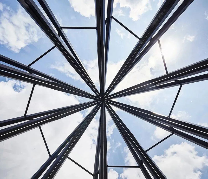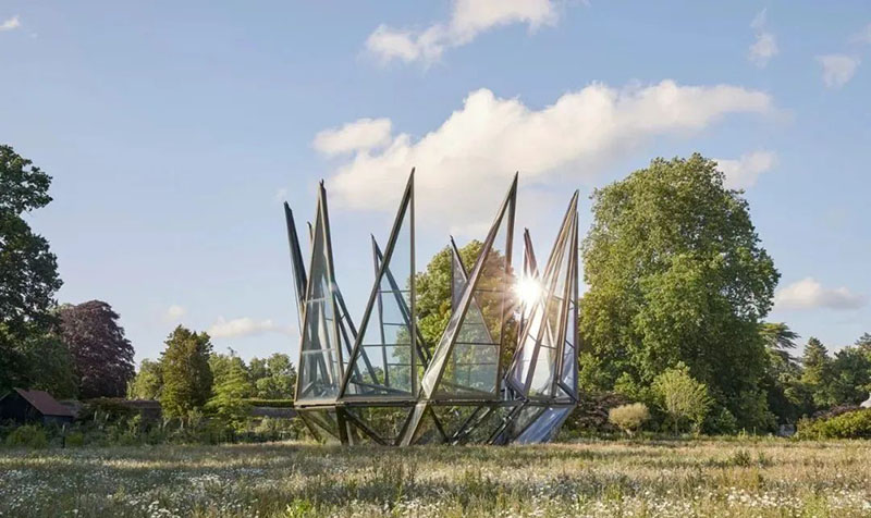 温室结构高度为15米,占地面积143平方米,可展开的结构成为新花园的焦点,展现出古代丝绸之路对当今英国花园的影响,由十个玻璃和铝结构的“萼片”组成,展开时间为四分钟,形成了大型皇冠形空间。该动力温室的设计灵感来自维多利亚时代的观赏玻璃容器,强调通过“将当代发明织入历史语境,继而拥有让彼此对话的信心”的方式来纪念过去。该温室本身保存着稀有的 Aralia Vietnamensis 标本,它为伞形树、木兰和香蕉旁生长的蕨类植物提供遮荫。该装置的工程设计提供了功能性的保护结构,同时为全新的丝绸花园提供了独特的装饰元素。其“萼片”可通过液压机打开,使植物获得阳光和通风;而在寒冷的天气之中,该结构则会保持闭合,为所藏的亚热带物种提供庇护。伍尔贝丁的动力温室和丝路花园现于 2022年4月28日至9月30日期间的每周四和周五面向公众开放。