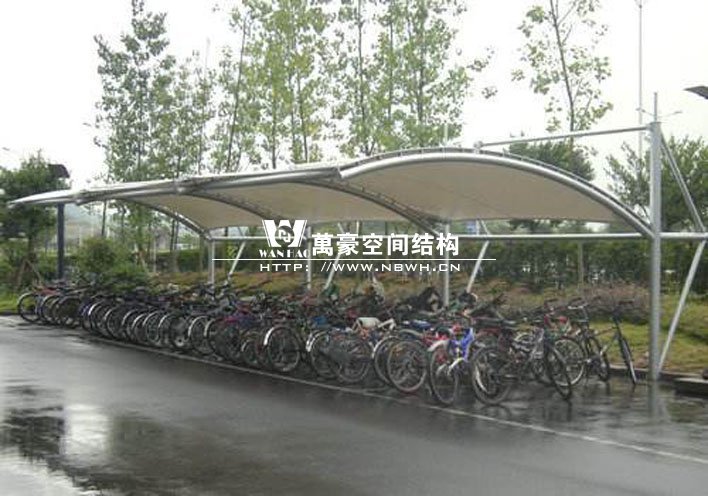 膜结构自行车棚适用于学校、商业、体育馆、工厂、医院、别墅及高档小区、政府机构等各类公共场所。