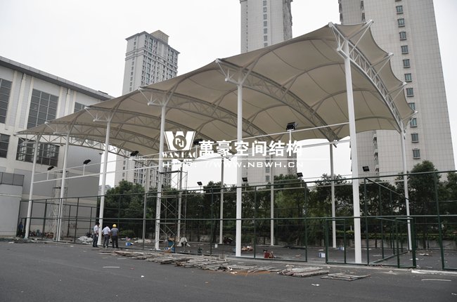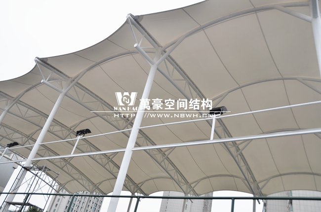 万豪膜结构广泛应用于商业广场、体育场馆、公交站台、收费站、污水池覆盖膜结构、沼气池覆盖膜结构、交通设施、环保设施、景观设施、文化设施、停车棚、钢结构厂房等领域的膜结构建筑设计与安装,及膜材料加工。万豪目前已有很多网球场张拉膜结构的工程案例,每个工程都完成的非常出色,近期在做的网球场膜结构是
