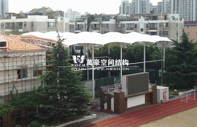 的一种,包括网球场顶棚张拉膜结构和网球场看台膜结构,主要起到防风雨、防日晒等基本功能。