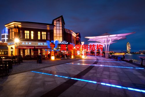 利用膜结构轻巧,别致的造型建造各种半封闭,全封闭的不行空间,使其形成全天候的建筑空间,提供防风雨,防日晒等人工环境,并有较好的标识招揽效果,因此是步行街改造和新建的绝佳选择。