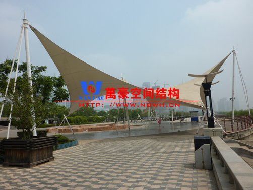 近年来,随着建筑空间观念的日益深化以及科学手段的不断提高,“回归自然”、“沐浴自然之温馨”已是现代建筑环境学发展的主流,景观张拉膜造型正好符合这个要求。