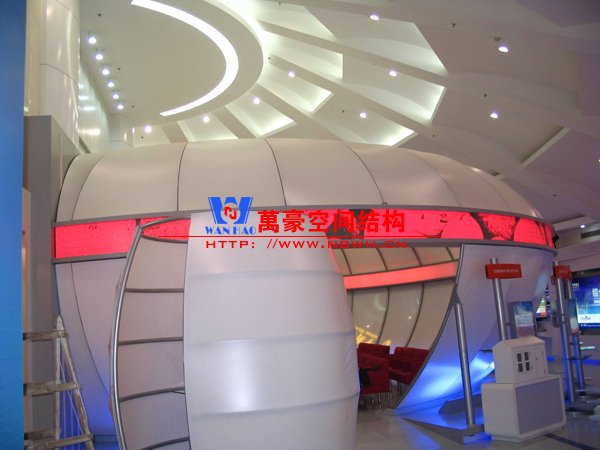 以上就是室内张拉膜的特点,室内张拉膜结构适用于各类工业场所、商业场所、办公场所、娱乐场所、酒店、医院、汽车(摩托车)展示厅、商务会所、室内游泳池、桑拿房等各类居住建筑和公共建筑,适用于任何类型的灯光,空调及声音、安全系统,独特的特色提供了多种选择样式,从简单的家居到体育场所和宾馆, 室内张拉膜迷人的特色能带给你无与伦比的设计效果。