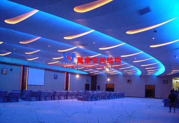 4、室内张拉膜结构款式多样,造型美观、随意、多样,风格典雅,色彩丰富。仅颜色就有100多种,质地8种之多,纹理逼真,具有视觉丰富。