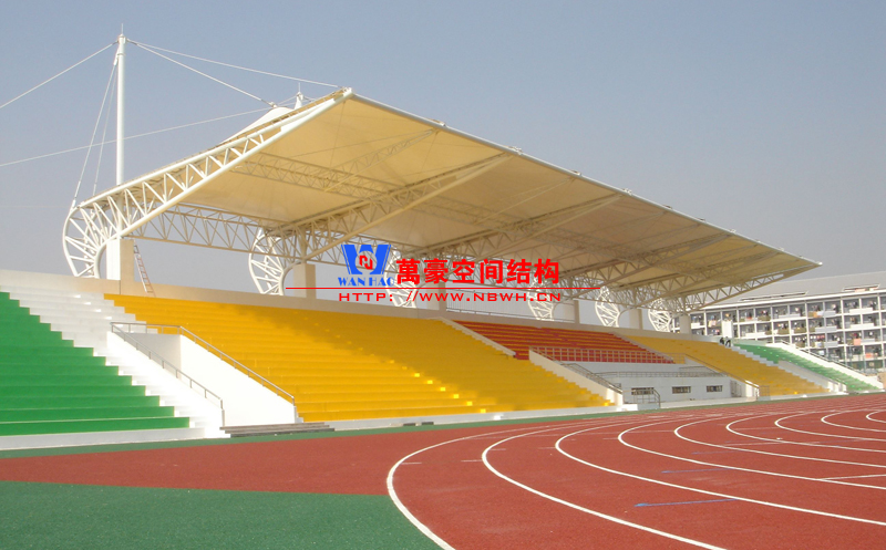1.造型优美:它打破了纯直线建筑形式的模式,以其独有的优美曲面造型,简洁、明快,恢弘大气,刚柔并济、力美融合。是现代运动场主席台、看台最佳的膜结构遮阳景观。