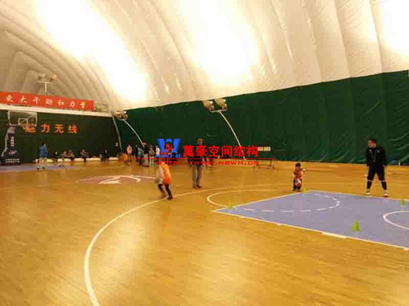篮球场膜结构顶棚是指安装在篮球场上方的膜结构,起到遮阳挡雨的作用。篮球场看台膜结构顶棚指的是在篮球场旁的看台休息区,座椅处上方的膜结构。而充气膜结构篮球场则是以特殊的建筑膜材做外壳,配备一套智能化的机电设备在气膜建筑内部提供空气的正压把气膜建筑主体支撑起来的一种建筑结构系统。