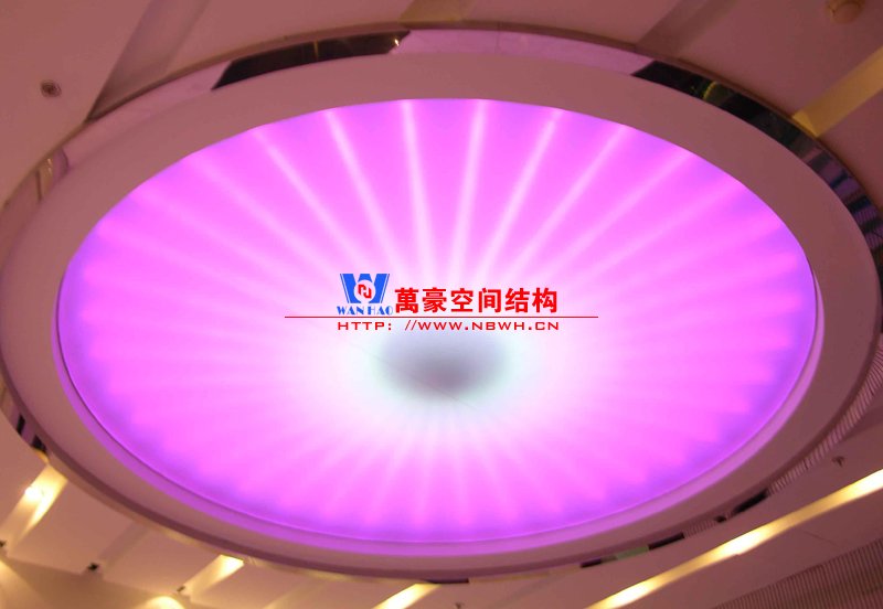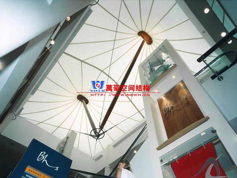 室内膜结构是膜结构工程的一种,是将膜结构设计技术应用到室内而产生的新型室内设计方式。它是一种全新的结构形式,集建筑学、结构力学、精细化工与材料科学、计算机技术等为一体,具有很高的技术含量。其曲面可以随着设计师的设计需要任意变化,结合整体环境,建造出各种美观、富有创意的室内形象工程。